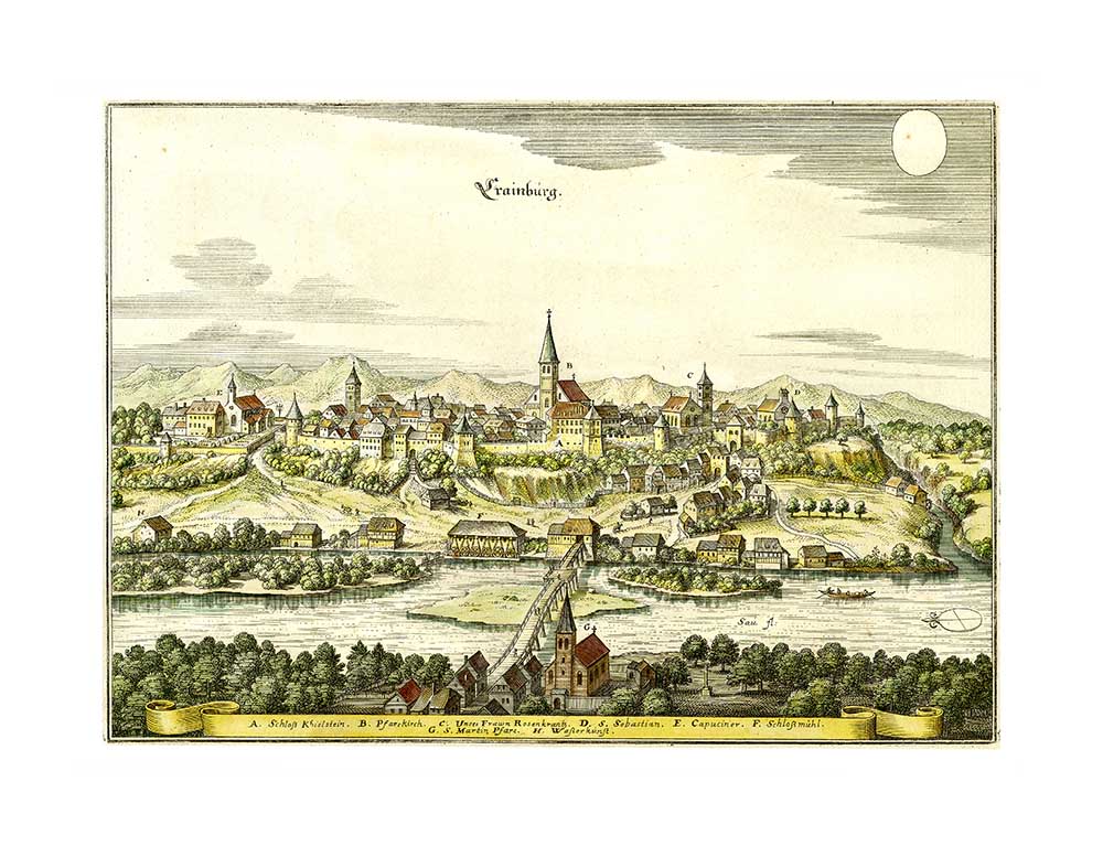 4414 5a Kranj 35x25 Crainburg Matthaeus Merian 1649